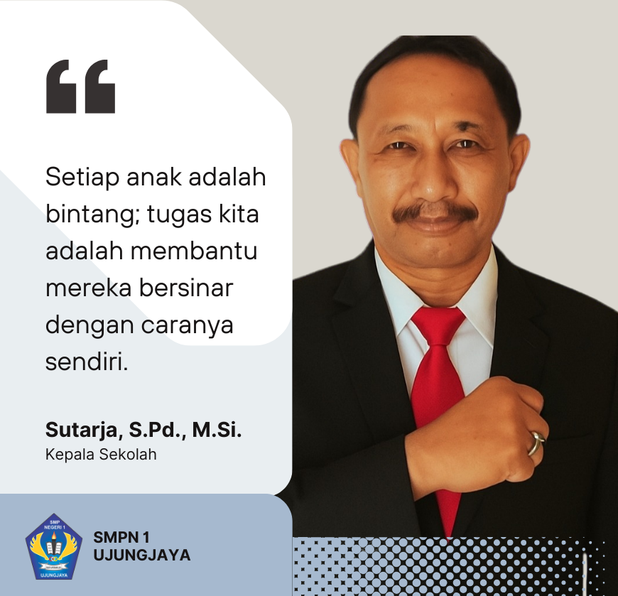 "Selamat datang di SMPN 1 Ujungjaya. Kami berkomitmen mencetak generasi Pancawaluya (Cageur, Bageur, Bener, Pinter, Singer) yang berlandaskan semangat Sagaya Jawara. Bersama, kita wujudkan lulusan berkarakter, unggul IPTEK, dan siap menyongsong Indonesia Emas 2045."